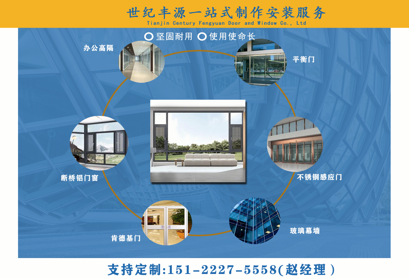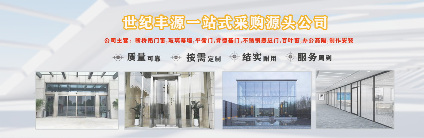 天津世紀(jì)豐源門窗有限公司從事斷橋鋁門窗,玻璃幕墻,平衡門,肯德基門,不銹鋼感應(yīng)門,百葉窗,辦公高隔,制作安裝一站式訂制生產(chǎn)及配套服務(wù)等。 公司自成立以來,始終堅持以人才為本、誠信立業(yè)的經(jīng)營原則,薈萃業(yè)界精英,成熟的技術(shù)、管理方法及企業(yè)經(jīng)驗與國內(nèi)企業(yè)的具體實際相結(jié)合,為企業(yè)供給各個方面的解決方案,使企業(yè)在激烈的市場競爭中始終堅持競爭力,實現(xiàn)企業(yè)快速、穩(wěn)定地發(fā)展?! ≠|(zhì)量好、服務(wù)好、才能信譽好,公司已在諸多領(lǐng)域取得輝煌成績,愿意成為您可信賴的長期合作伙伴?! ∽屛覀償y手同行,共同實現(xiàn)“讓普通老百姓都用得上高端門窗”...